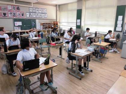 熱い中での連合運動会の練習の後でしたが、集中して学習をしていました。