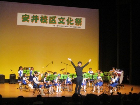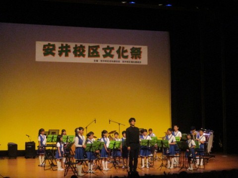 本日、フェニーチェ堺小ホールで安井校区文化祭が開催され、そのオープニング演奏を安井小学校音楽隊が務めさせていただきました。