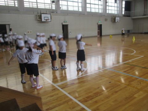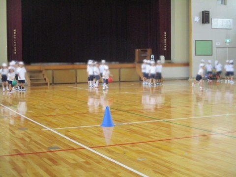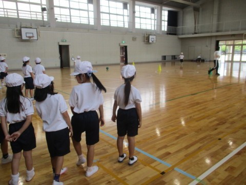 体育館での授業です。ボールを使って運動をしていました。