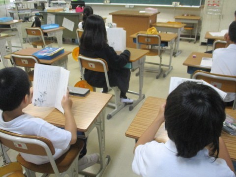 3年生 国語 公開日 2025/09/29 更新日 2025/09/29 3年生 教科書の「ちいちゃんのかげおくり」を声を出して読んでいました。会話文は子どもたちが大きな声をそろえて読み、それ以外の部分は先生が読んでいました。 学校 1年生 2年生 3年生 4年生 5年生 6年生 ひまわり PTA