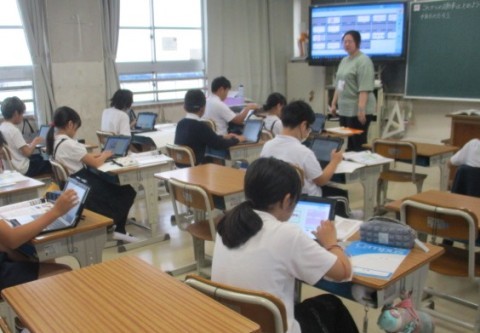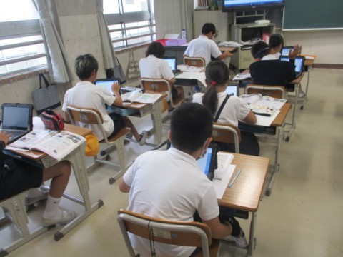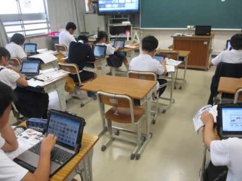 人にやさしい自動車、環境にやさしい自動車はどんな自動車があるか、タブレットを使って調べました。