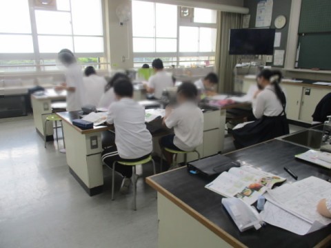 理科室で授業をしました。ヒトの誕生について学習しました。
