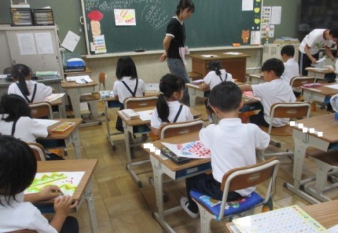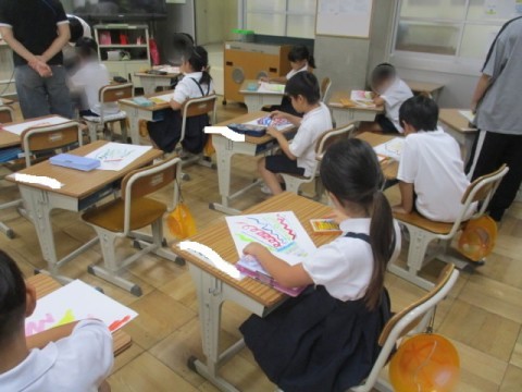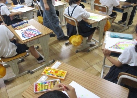 クラッカーの絵を描いていました。絵の具を使ったあとはクレヨンを使って仕上げていました。