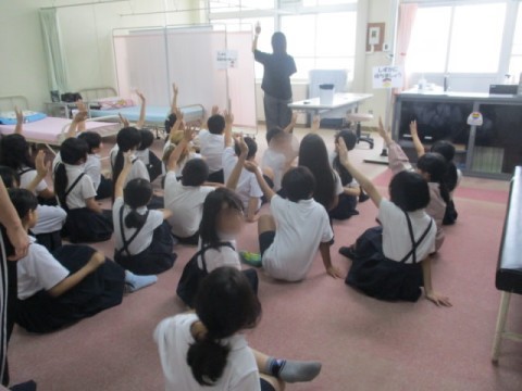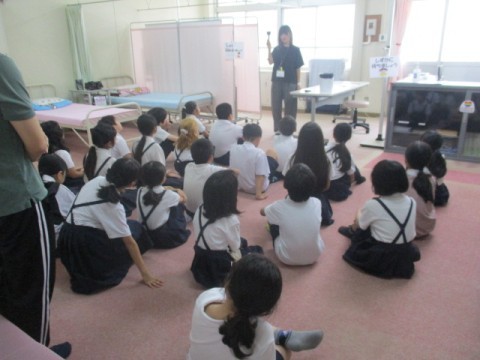 検査の前に、保健の先生から注意事項を静かに聞いていました。