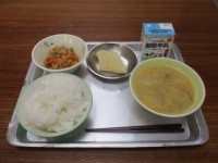 今日の給食のメニューは、ごはん、カレモア(ごはんにかけてたべます)、プアアのポリネシアンソーズ、ぎゅうにゅう でした。