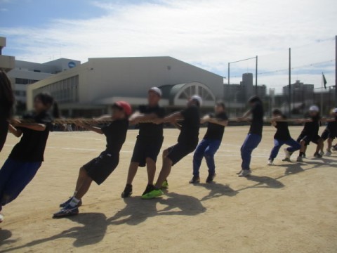 中学生に交じって、綱引きでは勝負にこだわり一生懸命に力を出し、フォークダンスでは楽しそうに演技をこなしていました。