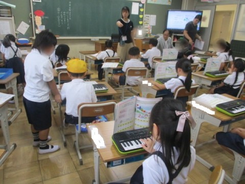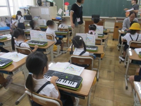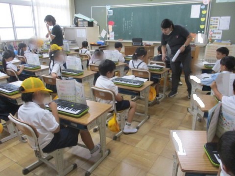 キーボードの授業でした。「ひのまる」の曲についてのキーボードをひとりひとり先生が確認していました。