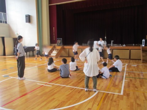 今日は体育館で忍者の動きについてのゲームを楽しみました。