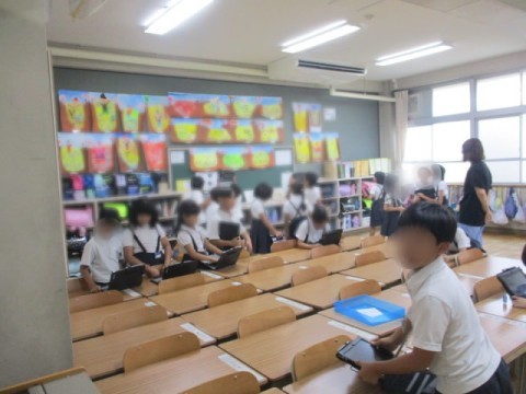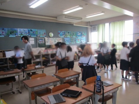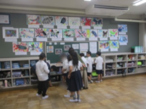 各教室の作品を、クラスごとに巡回し鑑賞しました。