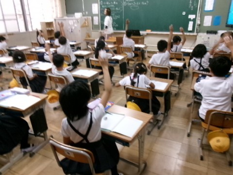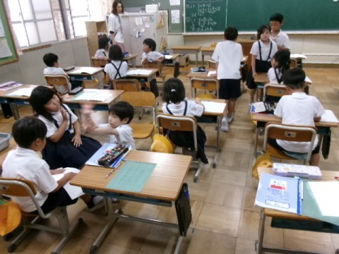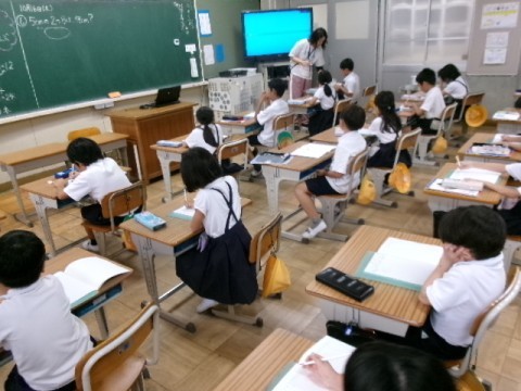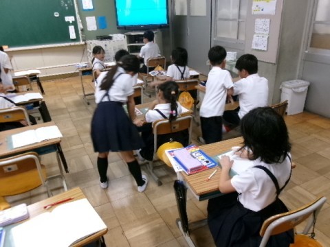 「5cmの2つ分は何cm?」という問題に取り組みました。自分の考えを書き,ペアやグループの子と交流をしたあと,みんなで考えを聴きあいました。そのときに一人の子が言った考えについて,「あ~なんかそれ分かるかも。」といった声がありました。他の子の考えを受け入れ,理解しようという姿と心がとっても素敵でした。