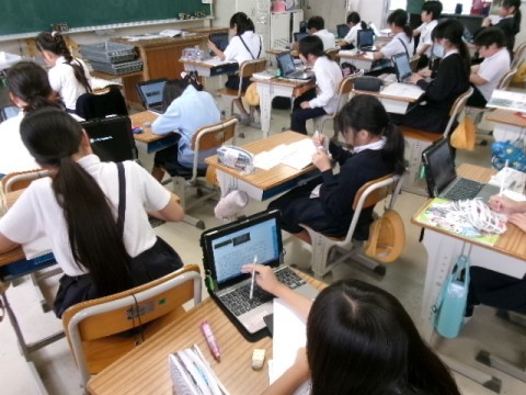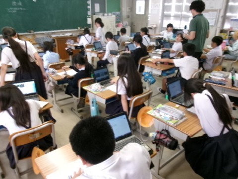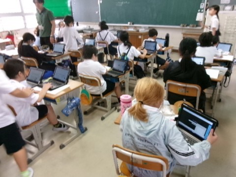 仁徳天皇陵古墳について調べていました。タブレットを使って調べていましたが,その内容で分からないところを先生や他の子に尋ねている子もいました。