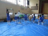 今日は体育館で全校朝礼があり、連合音楽会の発表会がありました。