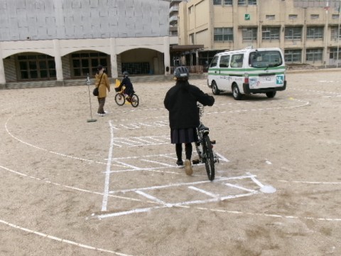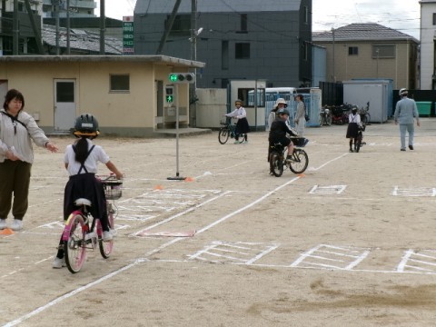 1年生は,歩行実技をしました。4年生は,自転車実技をしました。それぞれ警察の方からのお話を聞き,その後実技訓練をしました。交通ルールを守って,安全に通行できるようにしましょう!