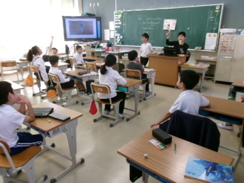 今日は「このカタチへんしんすると」という単元で,友だちの作品を見あいながら,クイズ形式で楽しんでいました。
