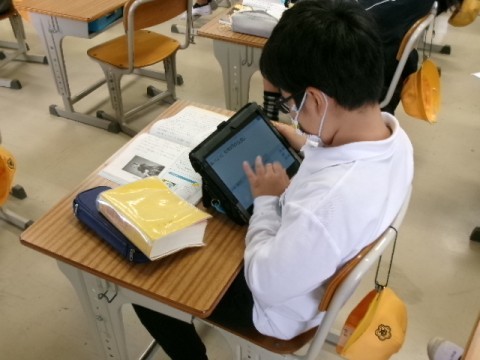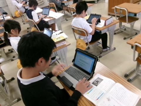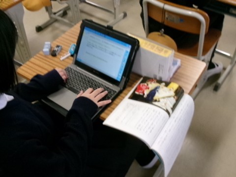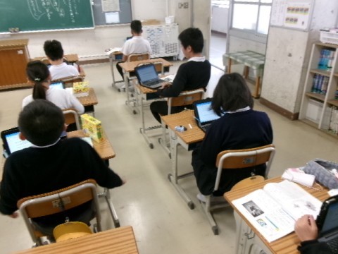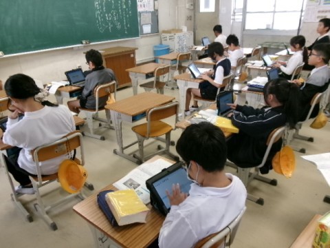 「真の看護を求めて」という教材で,ナイチンゲールの姿から,「真実を追求しようとする思いはなぜ大切なのか」をじっくり考えました。タブレットを使って,自分なりの考えを整理していました。