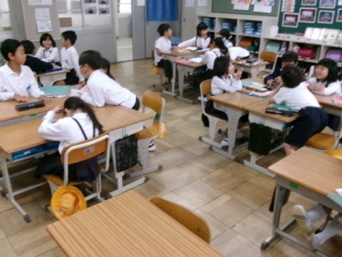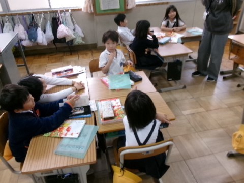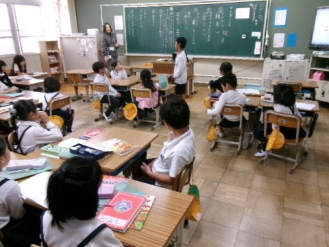 「話をつないで話し合おう」というめあてで,やすいばんぱくの場所について話し合っていました。やすいばんぱくは生活科で取り組んでいることですが,国語科の単元と合わせて学習を進めています。一人ひとりが自分なりに考えたり,発表したりしました。友だちの意見を聴く雰囲気がとてもよかったです。