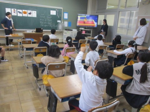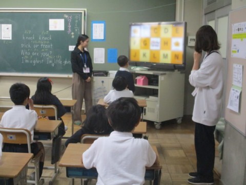 モニターを使ったハロウィンのゲームを行いながら、楽しく英語にふれることができていました。