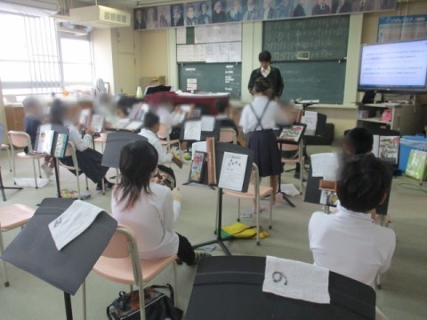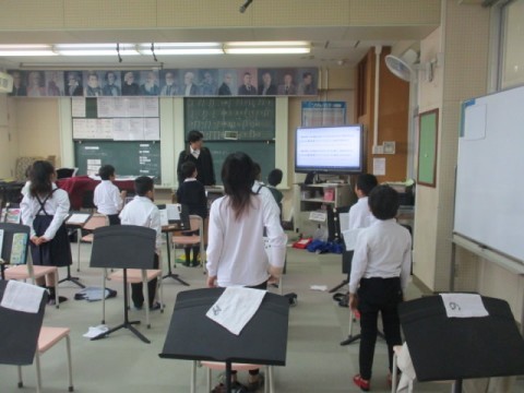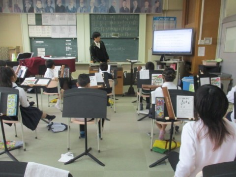 音楽室での授業でした。「とどけようこのゆめを」の歌の練習とリコーダーの練習をしました。