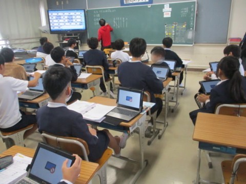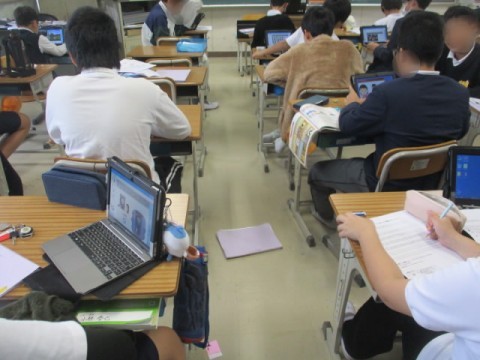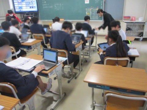授業では、それぞれが英語のインタビューした原稿をまとめていました。