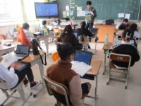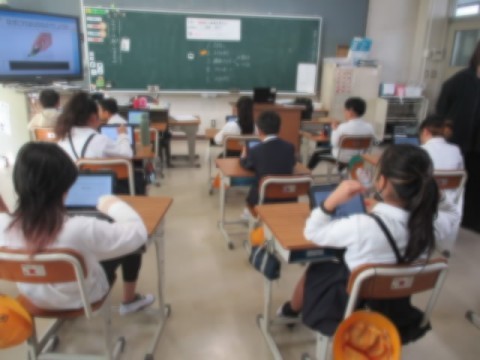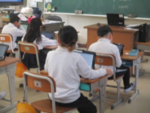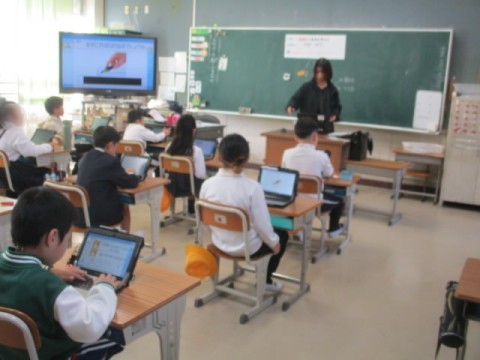 モニターに映ったユニバーサルデザインのカッターナイフについて、どんなところに工夫があるのかをタブレットを活用して調べていました。