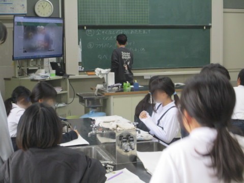 理科室での授業です。金属について学習していました。