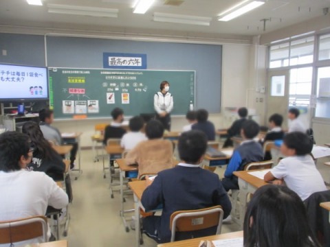 大仙西小学校の栄養の先生に来ていただき、食育の授業を受けました。