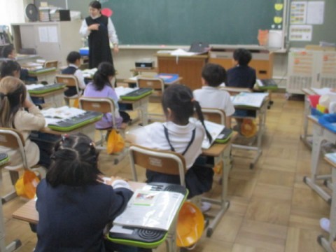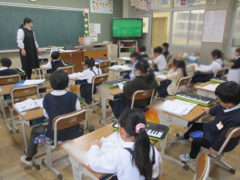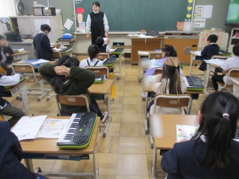 演奏で使われている楽器を想像したり、音楽を聴いて感じたことなどをプリントに書きました。