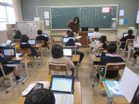 調べたことばは、タブレットに入力しました。タブレットの使い方も先生におしえていただきました