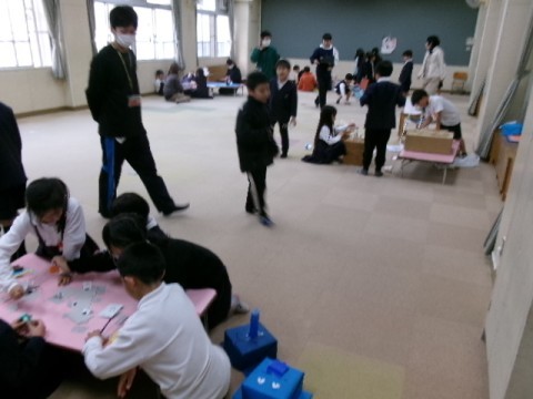 生活科の学習の一つとして「やすいばんぱく」を開催しました。2年生が工夫をこらして制作した各ブースを,他学年の子たちも体験をし,とても楽しそうに活動していました。