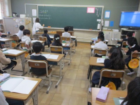 九九の決まりを使って、かけ算とたし算の虫食い問題を解きました。
