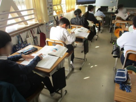 ある場面での登場人物の行動などをまとめていました。発言も積極的に出ていました。