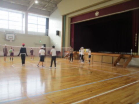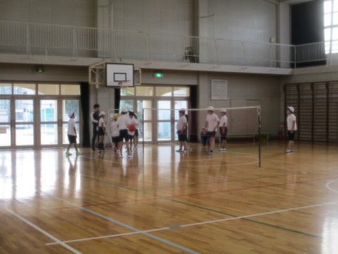体育館でバレーボールの授業でした。