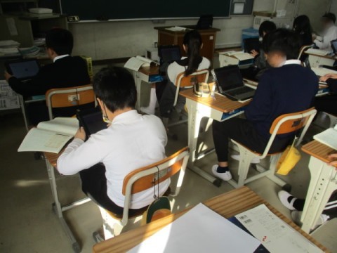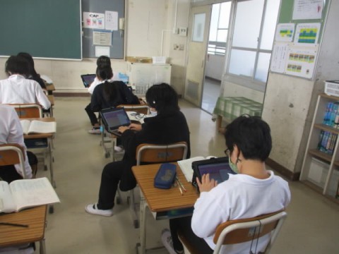 タブレットを使って、じぶんの窓を作りました。友達から、自分のよいところを入力してもらい、じぶんの窓を完成させます。