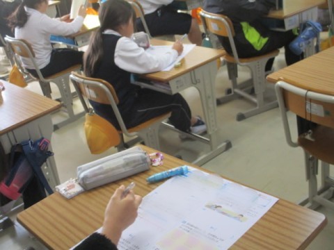 2学期の確認テストに取り組んでいました。