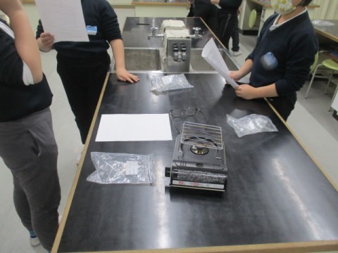 実験を始める前の準備や実験中のルール、片付けなど実験道具を使いながらチェックしていました。