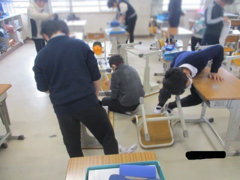 普段掃除をしない机やロッカーの奥、椅子の裏など雑巾などを使ってきれいに掃除をしていました。