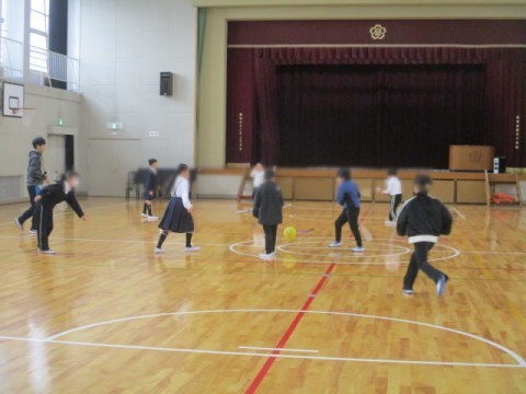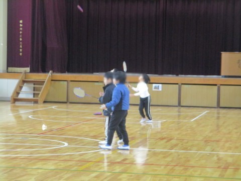 朝の1時間目に、体育館でバトミントンやバスケットボールを楽しんでいました。