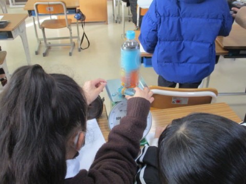ペットボトルや文房具などを、実際に計りを使って重さを調べました。