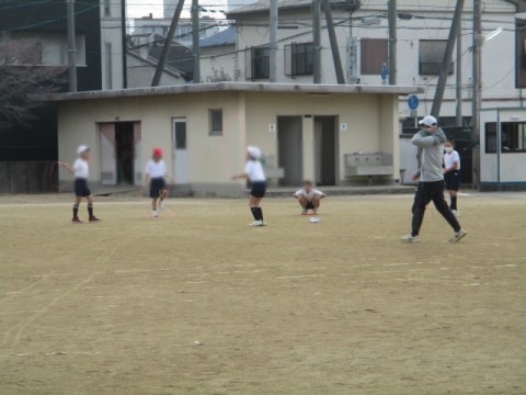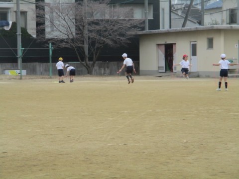 運動場での体育でした。音楽に合わせて、縄跳びをしていました。