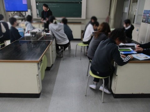 理科室での授業でした。今日は水溶液に関して学習していました。
