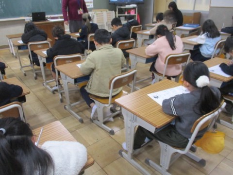 先生に書き順を教えていただき、また字のバランスを考えながら、一文字一文字丁寧にプリントに書いていました。