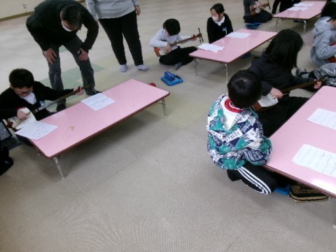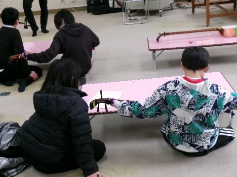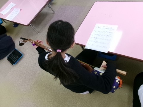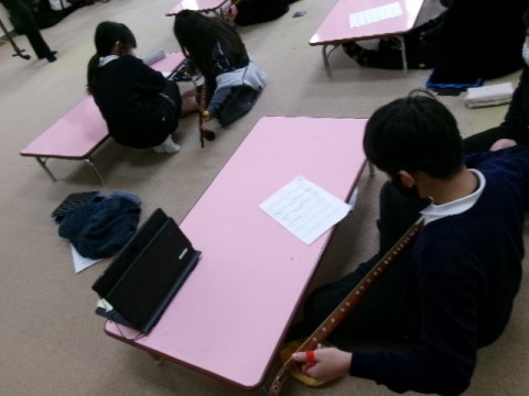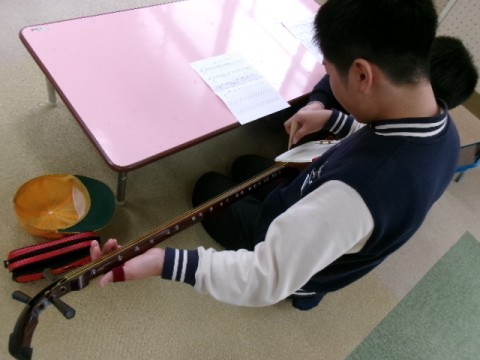 5年生が出前授業でつがる三味線を体験しました。「さくらさくら」にチャレンジしました。難しいようでしたが,徐々に弾けるようになってきていました。中々体験できることではないので,良い経験ができたようです。