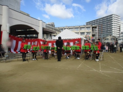 寒い中、3曲の演奏を行い、たくさんの地域の方から大きな拍手をいただきました。
