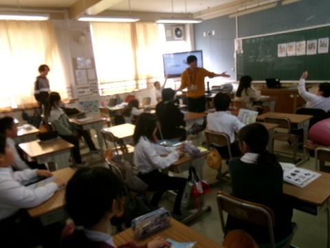 英語で道案内をする活動に取り組みました。案内するためのフレーズを最初に練習し,グループに分かれて活動しました。