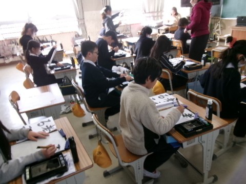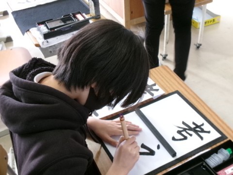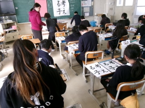 今日は毛筆で「考える子」と書きました。姿勢を正し,心を整えて静かに取り組んでいました。この取り組む姿勢がとてもすばらしかったです。