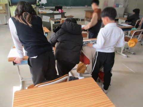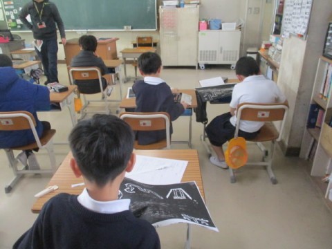 クラス全体の作品を見ながら、作品を見た感想をみんなで共有していました。
