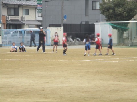 ボールを使ったゲームをしていました。2組に分かれて、対戦していました。