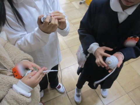 また、学習の合間に、コマやおてだま、あやとりなどで、みんなで楽しく遊んでいました。
