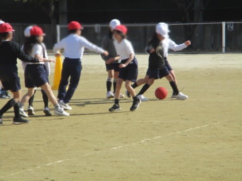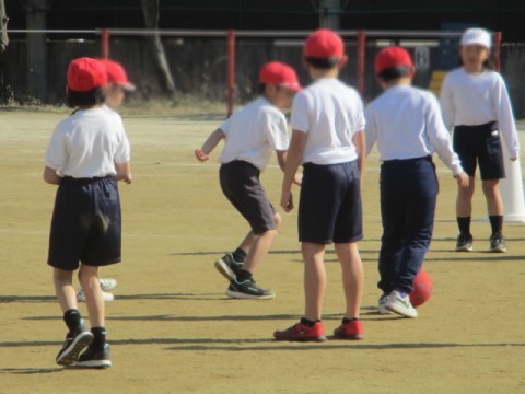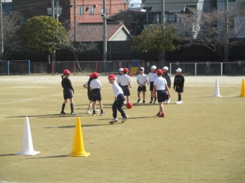 ボールに向かって、寒さに負けず、げんきに体を動かしました。
