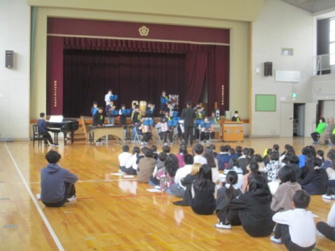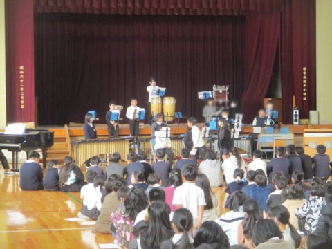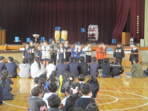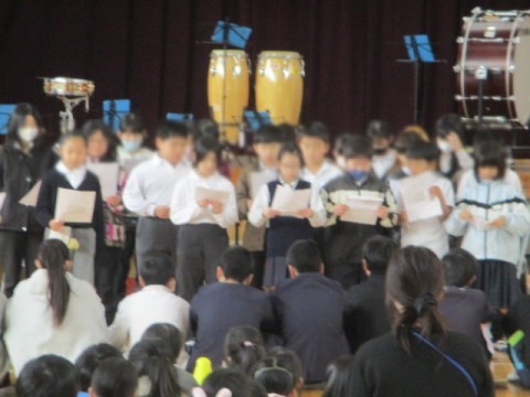 6年生を送る会では、各学年が順番に6年生に合奏やお礼の言葉を述べました。